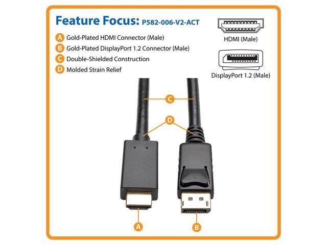 Tripp Lite DisplayPort 1.2 to HD Active Adapter Cable, DP with Latches to HDMI (M/M), UHD 4K x 2K/1080p, 6 ft. (P582-006-V2-ACT)