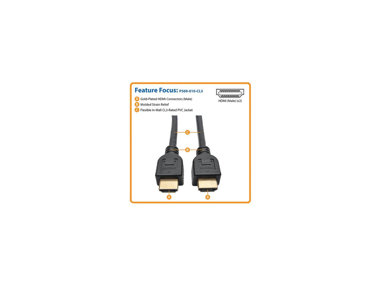 Tripp Lite 10 ft. Hi-Speed HDMI Cable with Ethernet Digital (M/M), CL3-Rated, UHD 4K x 2K, 10’ (P569-010-CL3)
