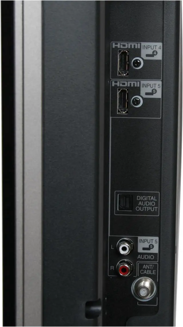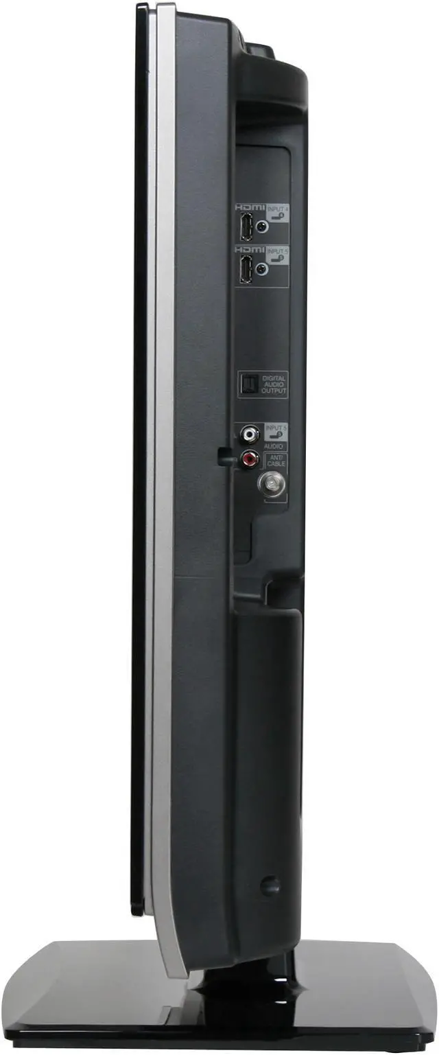 Built in ATSC and NTSC tuners receive both digital and analog broadcast signals. Multiple video inputs including 2 HDMI and 2 HD Component inputs allow you to hook up a variety of devices. It features a sleek piano black cabinet with subtle, recessed bottom-mounted speakers, and the included table stand easily removes for wall mounting applications.