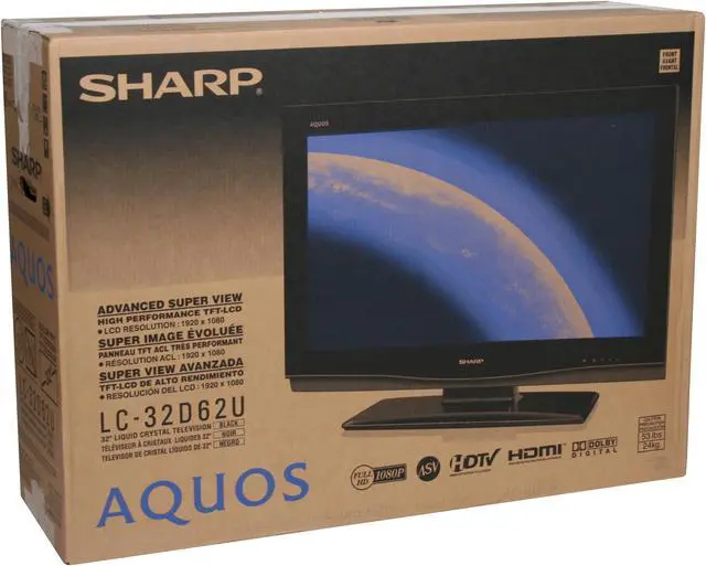 Next-Generation ASV LCD PanelFeaturing the next-generation Sharp proprietary Advanced Super View/Black TFT panel with multi-pixel technology, the SHARP LC32D62U boasts an amazing 450 cd/m2 brightness, 10000:1 dynamic contrast ratio with Enhanced Picture Contrast Technology and 176° viewing angles for breathtaking color purity and a perfect experience from almost any viewing location!
