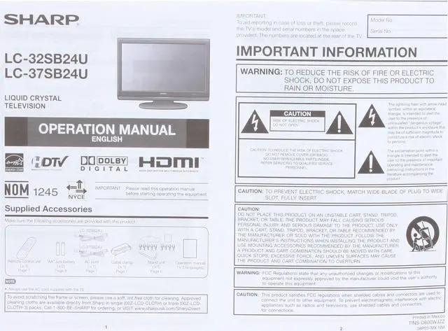 Built-in ATSC TunerArmed with a built-in ATSC tuner, the Sharp LC-32SB24U displays digital over-the-air programming without additional digital set-top equipment.