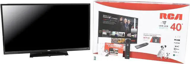 The RCA SLD40HG45RQ LED TV is great for everyday home entertainment. This 40" TV boasts Full HD resolution, 5000:1 contrast ratio and 8ms response time, producing brilliant, crisp picture with excellent details and motion clarity. Its built-in Wi-Fi capability makes it easy to access online contents. Plus, featuring sleek, stylish design with slim bezel and an elegant stand, this model will be a seamless addition to any room of your home.
