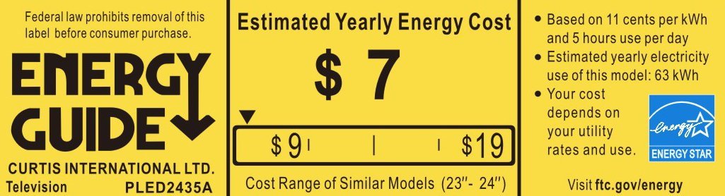 :| Screen Size: 24"| Backlight Technology: LED| Aspect Ratio: 16:9| Digital Tuner: ATSC| Video Signal Standard: HDTV 1080p| Standard Refresh Rate: 60 Hz| Maximum Resolution: 1920 x 1080| Scan Format: 1080p| HDMI: Yes| Total Number of HDMI Ports: 1| VGA: Yes| Energy Consumption per Year: 51.8 kWh| VESA Mount Standard: 100 x 100| Green Compliant: Yes| Green Compliance Certificate/Authority: ENERGY STAR. .