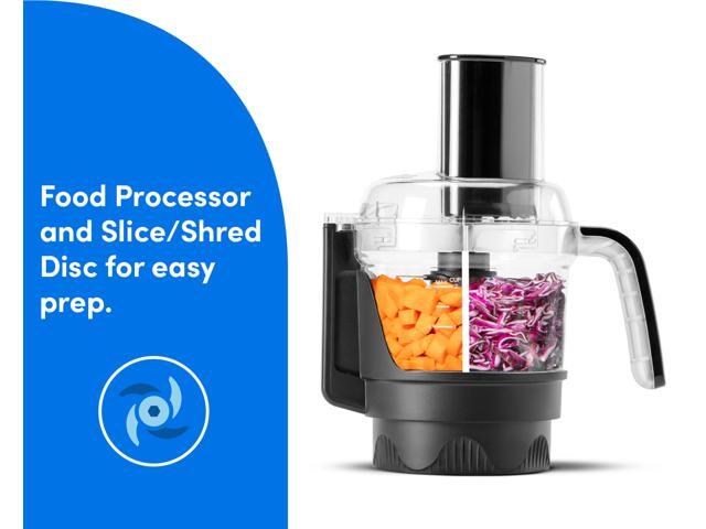 - Food processor quickly chops, slices, and shreds a wide array of ingredients for unlimited culinary creations
