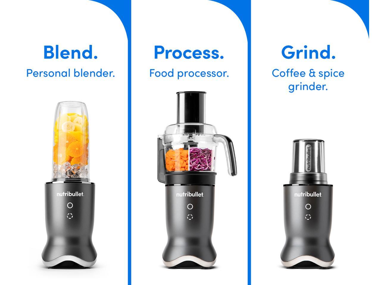 Nutribullet Ultra Plus Kitchen System, 32 oz. and 24 oz. Blending Cups, 2-Cup Food Processor, Single Speed, Gunmetal Grey Blender
