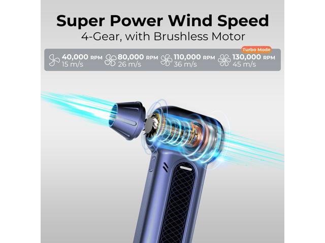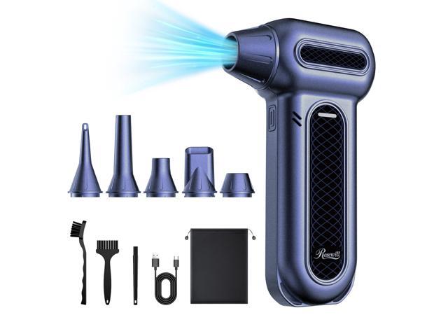 Rosewill Cordless Air Duster - 130,000 RPM Super Power Cordless Compressed with Turbo Mode, 4-Gear Adjustable Mini Blower with Fast Charging, Inflation and Suction, Dust Blower for Computer, Keyboard