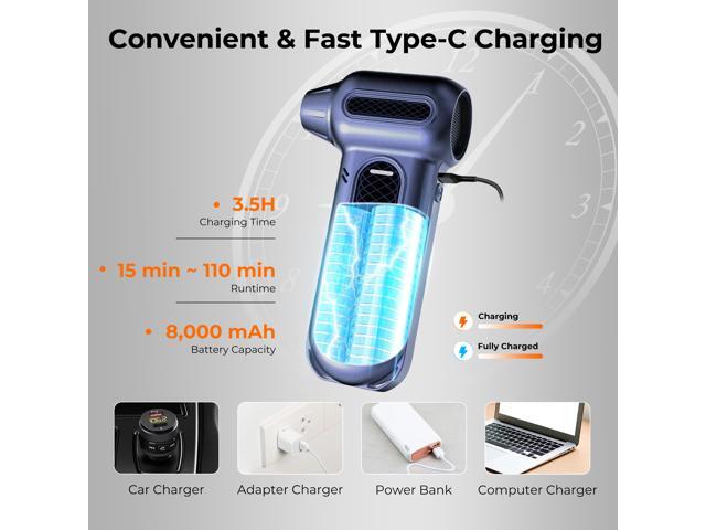 - 3.5 Hours Fast Charging: The electric cordless air duster recharges in just 3.5 hours with a type-C cable at max 5V/2A