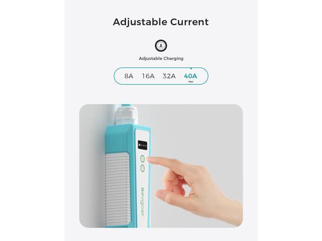 - Adjustable Current: The Level 2 charger allows for current adjustment ranging from 8A to 40A for 240V (with options of 8A, 16A, 32A, and 40A) The Auto Mode maximizes current output for rapid charging, while the Manual Mode optimizes current output to extend battery life