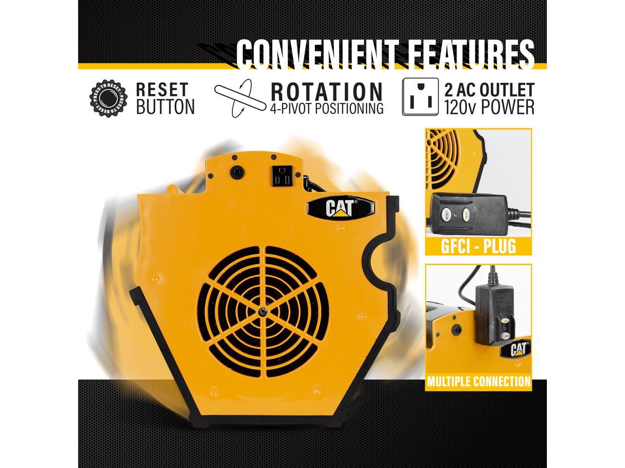 Caterpillar® fan (CF-B1200-YW) High Velocity 1200 CFM, Multi Pivoting Cooling, Ventilating, Drying Fan W/ 2 Grounded AC Outlets, Adjustable 4 Speed Enclosed Dual Ball Bearing Motor, & GFCI Plug