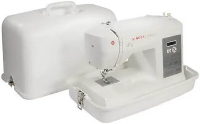 Universal carrying & storage case made of impact-resistant plastic Fits most brands of free-arm sewing machines and small overlock machines Lightweight, yet durable; provides dust-free storage for machines not in use Safety "sure-lock" metal latches; built-in handle offers comfortable, secure grip Ships in easy-to-open packaging