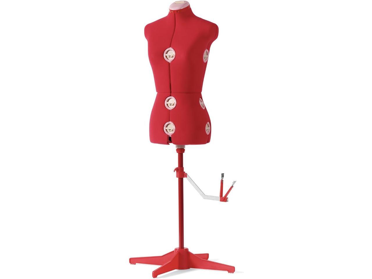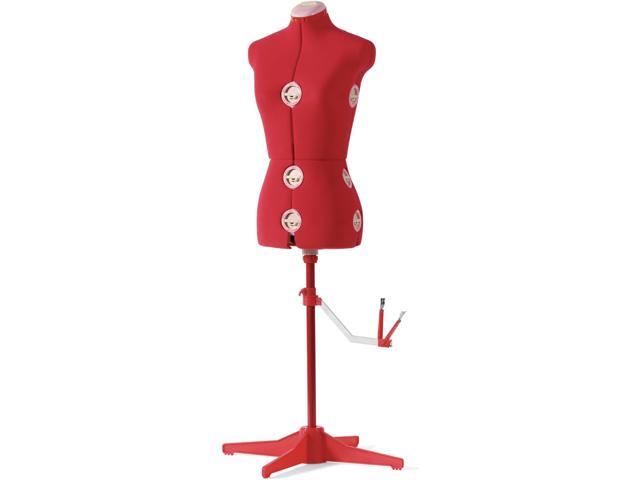 SINGER Female Adjustable Red Dress Form Fits Sizes 4-10 Pinnable Mannequin Body Torso with 360 Degree Hem Guide, Foam-Backed Fabric Exterior, 12 Dials, Tri-Pod Stand, DF150SMRD