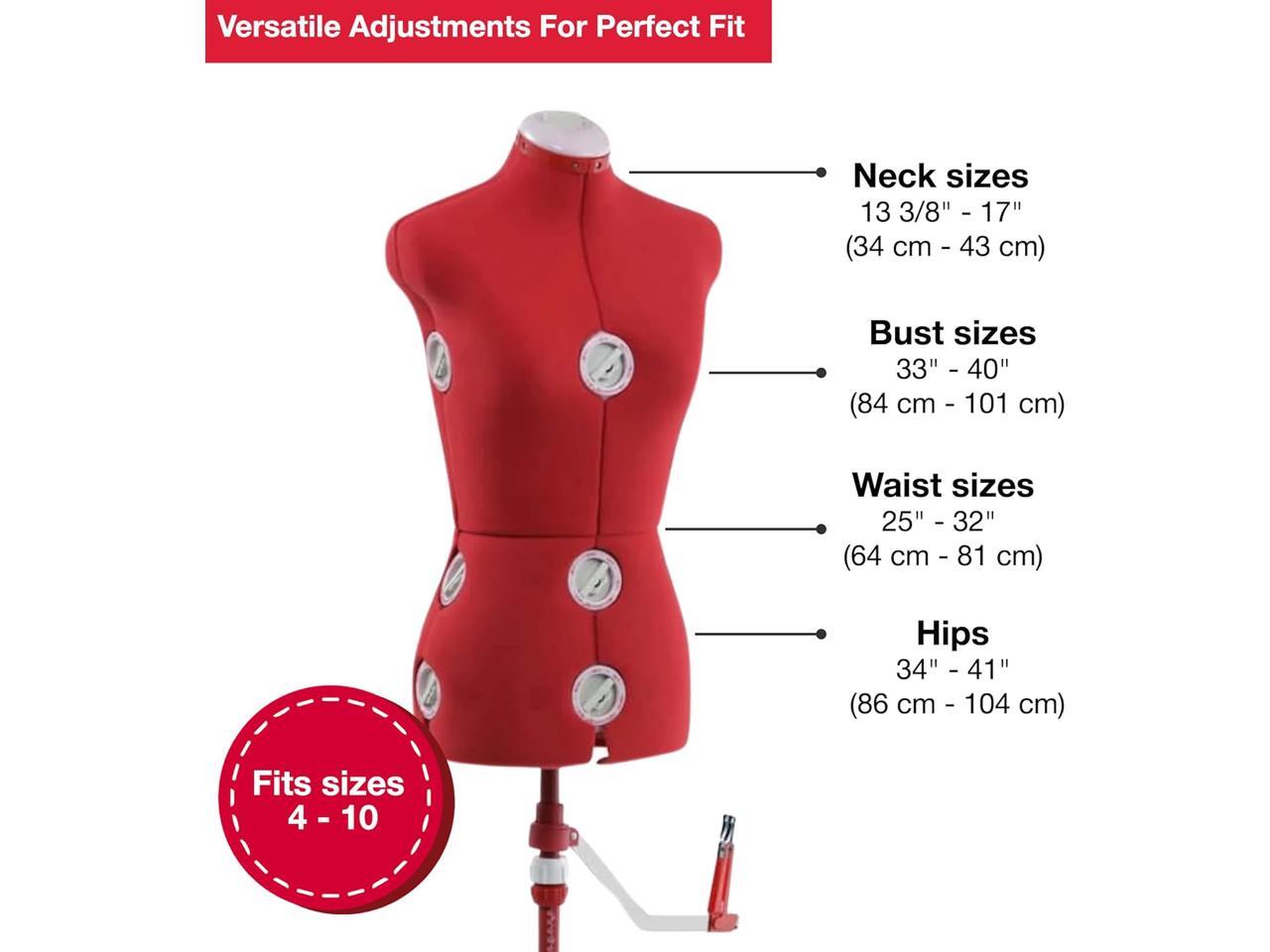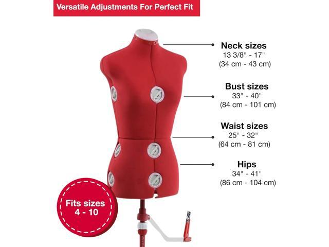 - GET THE PERFECT FIT FOR ANY SEWING PROJECT: Whether you’re designing new garments or making alterations, the SINGER Adjustable Dress Form provides a flawless fit every time. With adjustable neck, bust, waist, hips, and height, it accommodates sizes 4-10, ensuring your sewing projects are accurate and professional.