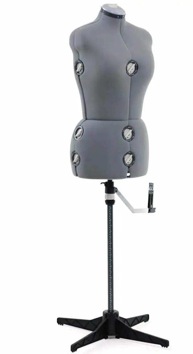 This dress form mannequin is perfect for precision sewing or even a display piece! The dress form's 12 dials allow you to find the perfect fit in seconds. The Foam-Backed Fabric Exterior allows you to easily pin dresses, skirts, tops and patterns. The easy tool-free Height Adjustment lets you customize the dress form to your height in a snap. Enjoy absolute accuracy with the easy-basting Hem Gauge.
