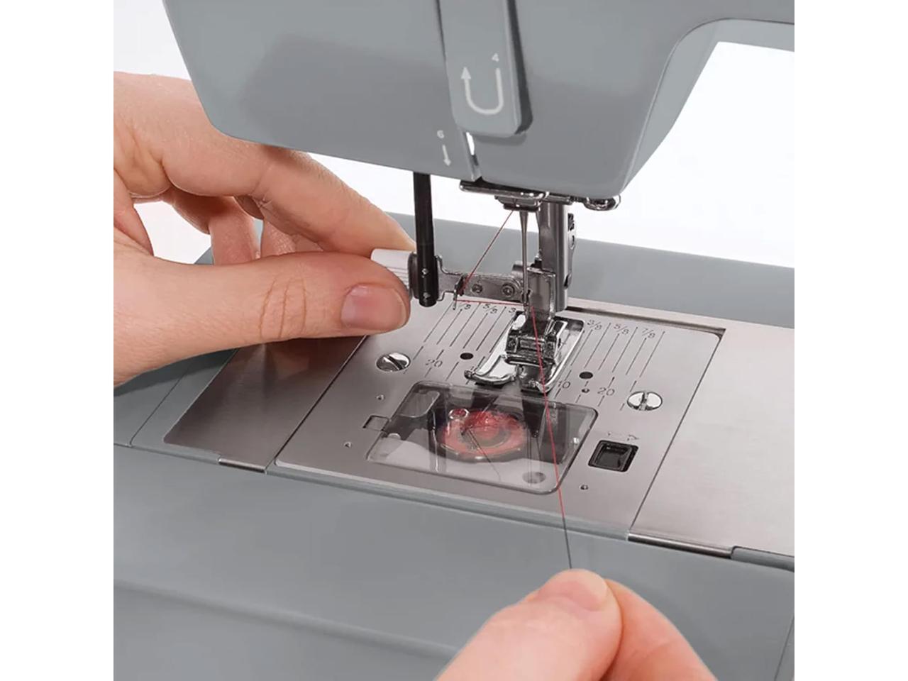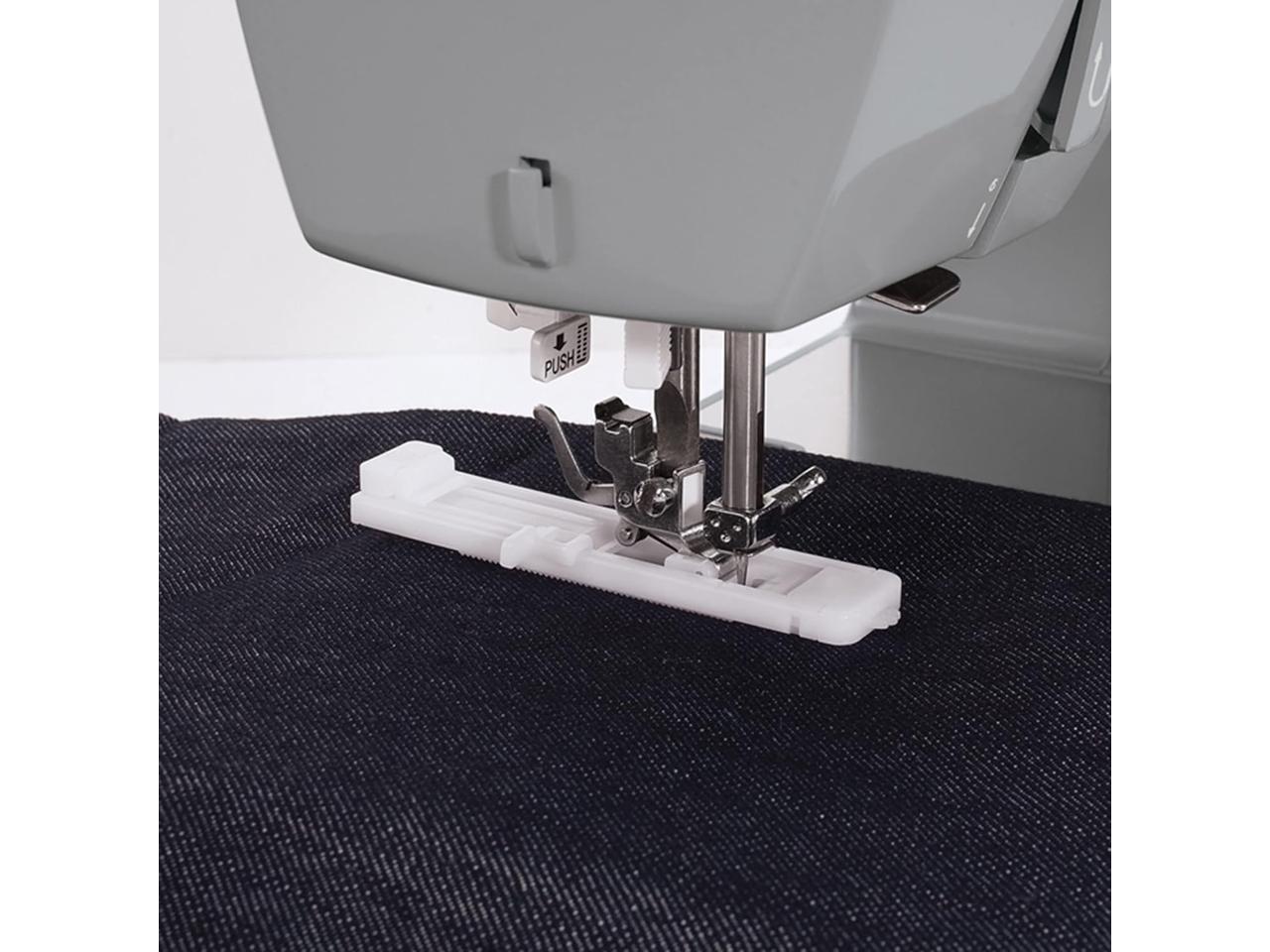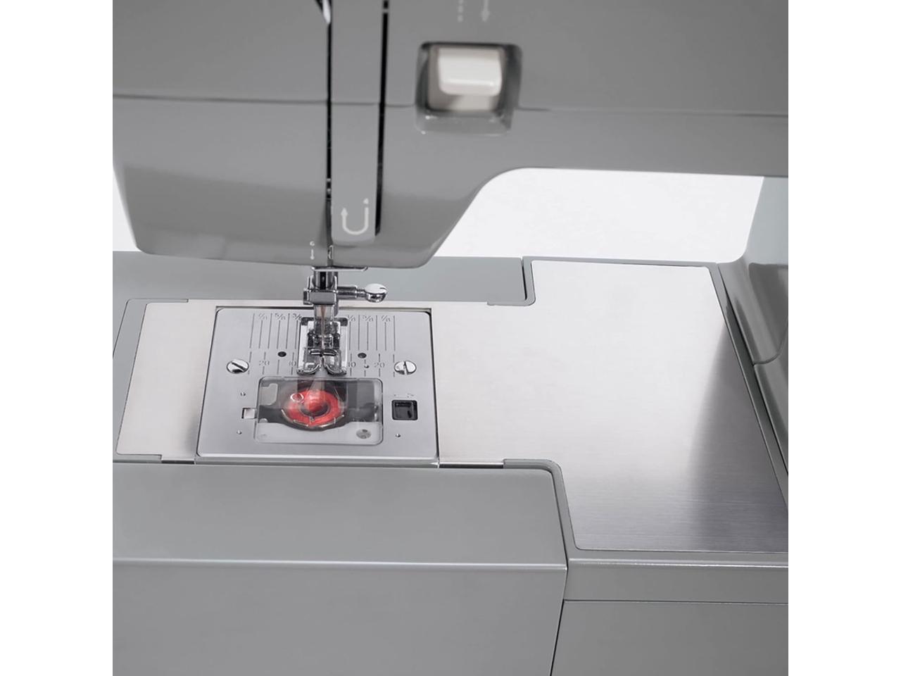 - Adjustable Foot Pressure: With adjustable presser foot pressure, you can also sew very lightweight sheers, and the stainless steel bed plate allows fabrics to glide over the machine with ease.