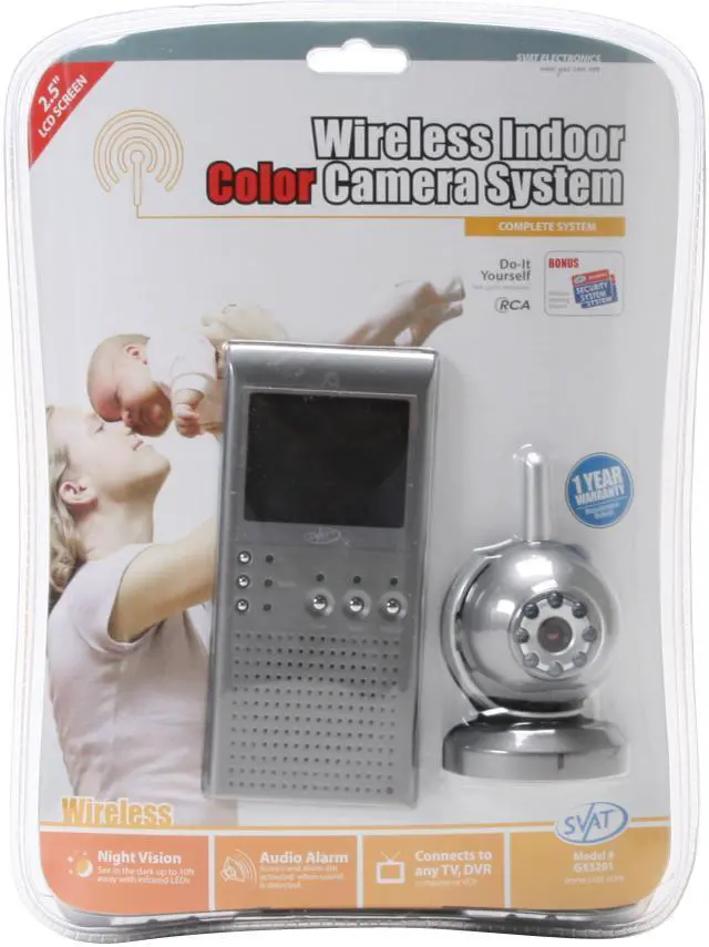The GX5201 camera is wall, ceiling or desk mountable. The system allows you to plug both the camera and monitor into any AC outlet. If no AC outlet is available, the camera can run on a rechargeable battery pack and the monitor can run on AAA batteries (batteries not included). Never has a baby monitoring system been so compact, versatile, and affordable. Take peace of mind with you wherever you go.