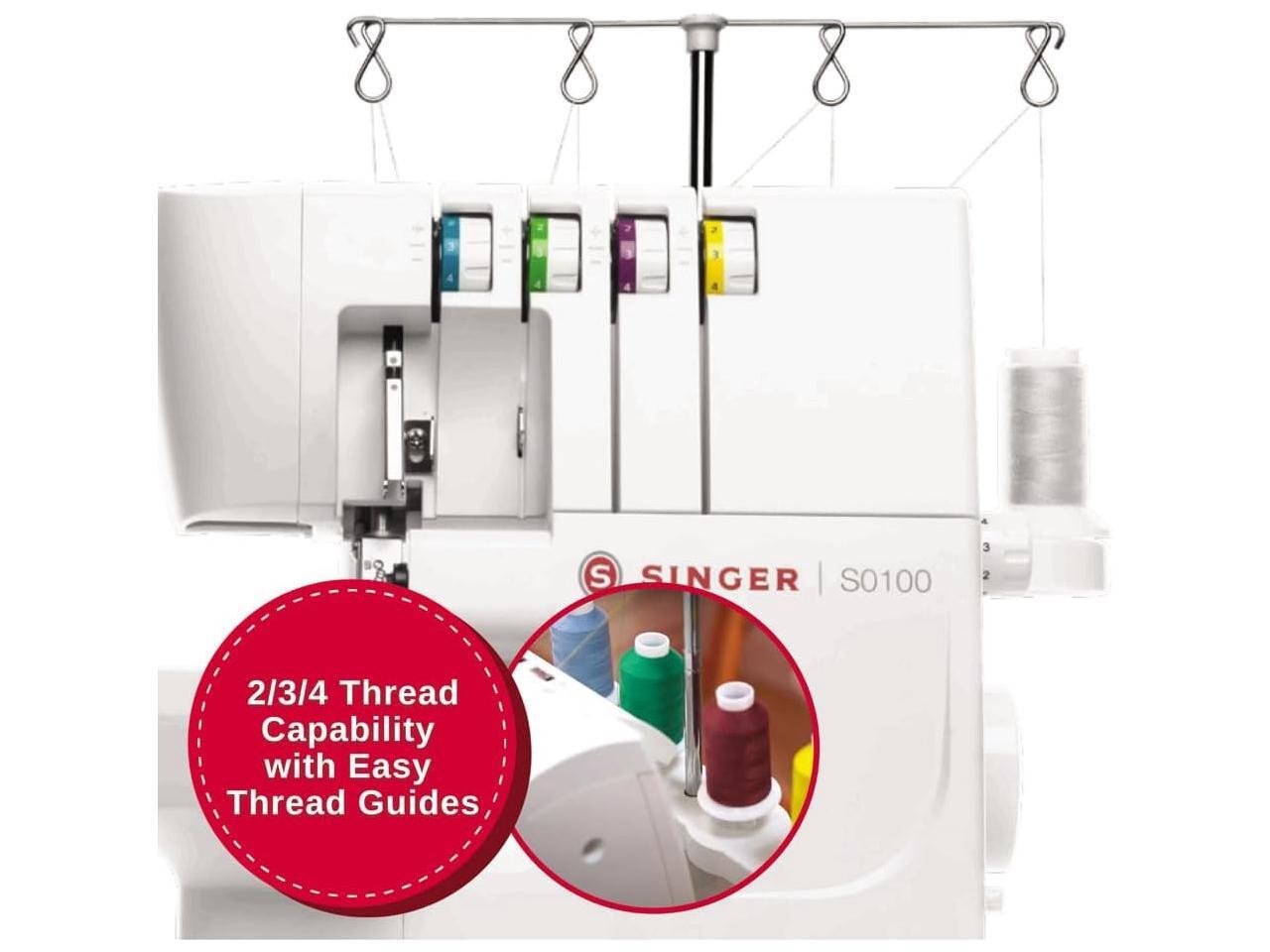 SINGER S0100 Metal Frame Serger with Accessory Kit | Overlock Machine with 6 Built-in Stitches, 2-3-4 Thread Capability, Adjustable Tension & Stitch Length, 1300 Stiches per Minute & Differential Feed