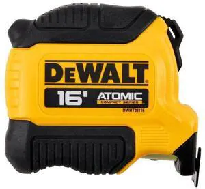 DEWALT Atomic Compact Series 16 ft. Tape Measure (DWHT38116S), Slide, Hard Plastic, Metal, 16 feet, Black, Yellow
