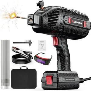 Stylish Handheld Welder, 110V Portae Welding Machine with IGBT Inverter, 120A Stick Welder with Auto Darkening Goggles and Upgraded Ground Cla, Fits for 3/32"-1/8" Welding Rods