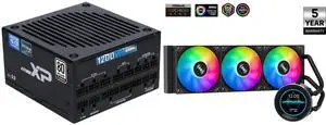 SAMA XP 1200w ATX Power Supply PSU For Gaming Computer PC Power Supply Unit - 80 Plus Platinum - ATX 3.0 & PCIe 5.0 Compliant - Fully Modular - Low Noise Intelligent ECO Silent Fan- Japanese Capacitor and SAMA SM360 PRO AIO 360mm Liquid Cooler 2.8 inch Screen LCD Display CPU Cooler , Gaming Computer PC Cooler with 3 ARGB PWM Silent Fans