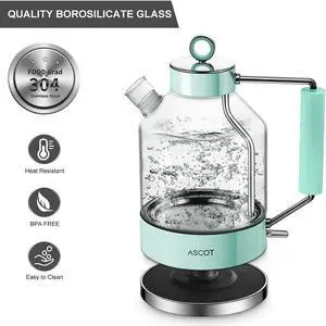 Chefman Electric Kettle, 1.8L 1500W, Hot Water Boiler, Removable Lid for Easy Cleaning, Auto Shut Off, Boil-Dry Protection, Stainless Steel Filter, BPA Free, Borosilicate Glass Electric Tea Kettle- Brand: Chefman
