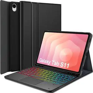 Nanhent Touchpad Keyboard Case for Samsung Galaxy Tab S11 2025 11 Inch 5G SM-X736B/ WIFI SM-X730, 7 Color Rainbow Backlight Detachable Bluetooth Trackpad Keyboard Folio Cover with S Pen Holder (Black)