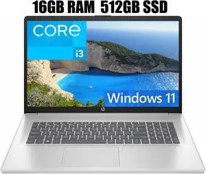 HP 17 Laptop, 17.3" FHD Screen, AMD Ryzen 5 5500U, 16GB SSD, 512GB SSD, Webcam, HDMI, Fingerprint Reader, Wi-Fi, Windows 11 Home, Silver