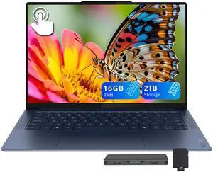 Lenovo Yoga Slim 7 14.5" 3K OLED Touchscreen Laptop, Snapdragon X Elite X1E-78-100, 16GB RAM, 2TB(1TB SSD+1TB Docking Station Set), Qualcomm Adreno, Backlit Keyboard, Win 11 Pro, Blue