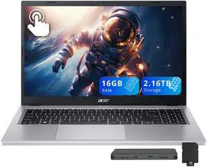 Acer Aspire 3 15.6" FHD Touchscreen Laptop, AMD Ryzen 5 7520U, 16GB DDR5, 2.16TB Storage(2TB SSD + 160GB Docking Station Set), AMD Radeon Graphics, Numeric Keypad, Win 11, Silver
