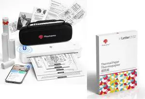 Phomemo M834 Bluetooth Thermal Printer with Carry Case & 200 Sheets US Letter Thermal Printer Paper 8.5" x 11"
