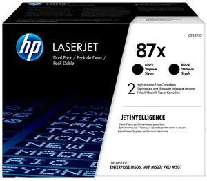 HP 87X 2-pack High Yield Black Original LaserJet Toner Cartridges, ~18,000