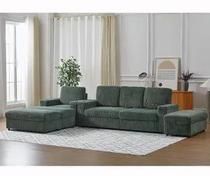 Corduroy single recline With 3-seater sofa ,cup-holding grooves Comfy Sofa- Deep Seat Couch for Living Room