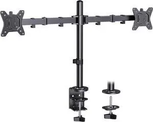 ErGear Dual Monitor Desk Mount for 1334 Monitors up to 26.5 lbs, Fully Adjustable Monitor Stand Holds 2 Computer Screens, Heavy-Duty Dual Monitor Arm with C-Clamp & Grommet Base, Black, EGCM13B
