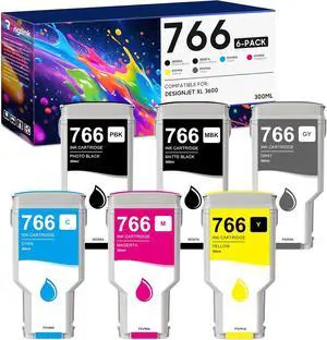 766 Ink Cartridge 300ml 6-Pack Replacement for HP 766 Ink Cartridges 3ED57A P2V89A P2V90A P2V91A P2V93A 3ED55A for DesignJet XL3600 Series Printer