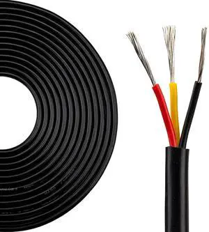 100FT 20 Gauge 3 Conductor Electrical Wire UL2464 100FT/30M 20/3 Electrical Wire Stranded Tinned Copper Wire 20 AWG Black PVC Sheathed for LED Lamp