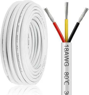 100FT 18 Gauge 3 Conductor Electrical Wire,18/3 Low Voltage Landscape Wire, 18 AWG Stranded Tinned Copper 3 Wire Cable for LED Lighting Strips Automotive Marine, White