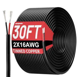 16 Gauge Wire 2 Conductor Electrical Wire, 16 AWG Wire Stranded PVC Cord, 12V Low Voltage/Tinned Copper/Flexible/16/2 Wire for Automotive Wire LED Strips Lamp Lighting Marine (30FT-9.1M)
