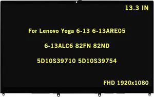 13.3" Digitizer Assembly for Lenovo Ideapad Yoga 6-13 6-13ARE05 6-13ACL6 82FN 82ND 82ND006PUS 5D11B22390 5D11B22395 5D11C99346 5D10S39710 5D10S39754 FHD 1080P LCD Touch Screen Replacement