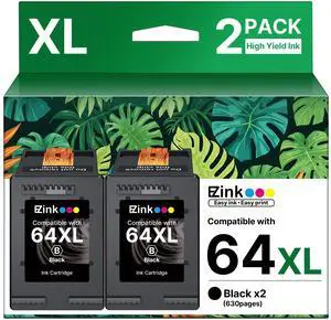 64XL Ink Cartridges Replacement for HP 64XL HP Ink 64XL Black and Color Combo Pack Work for HP Envy Inspire 7955e 7958e 7255e Photo 7155 7858 7155 7100 7800 7900 7855 6222 Tango (Black Color, 2 Pack)