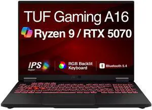 ASUS TUF Gaming A16 AI Gaming Laptop 16.0" 165Hz IPS WUXGA Display (AMD Ryzen 9 270, NVIDIA GeForce RTX 5070 8GB, 64GB DDR5, 8TB PCIe SSD, RGB KB, WiFi 6E, Webcam, Bluetooth 5.4, Win 11 Home)