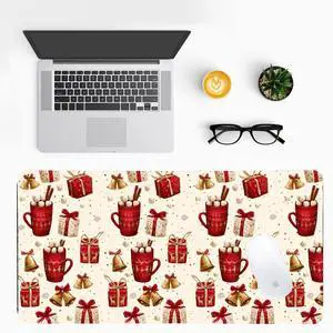 Hot CocoaChristmas Desk Mat - Festive Holiday Office Desk Pad with Mug & Bow Design, Non-Slip PU LeatherDesk Pad,Christmas Decorations Gift, Cozy Home Office Decor with Xmas Patterns (31.5x15.7 Inch)