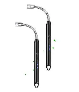 ELCELC 2 Pack Electric Candle Lighter Plasma Flameless Arc Windproof 360° Long Neck Flexible with LED Power Display Lighters for Candle for BBQ, Grill, Camping, Fireplace, Stove