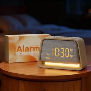 Sound Machine Alarm Clock for Bedroom: 25 Natural Sleep Sounds - White Noise Machine for Adults Kids Baby - Gentle Wake Up Alarm with Bluetooth Speaker - Putty