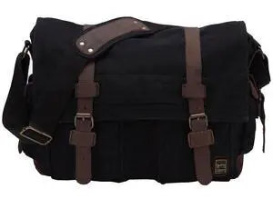 Berchirly Men Women Canvas Leather Messenger Shoulder Bag Fits 17.3" Laptop