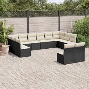 vidaXL Garden Sofa Set Black PE Rattan Large Detachable