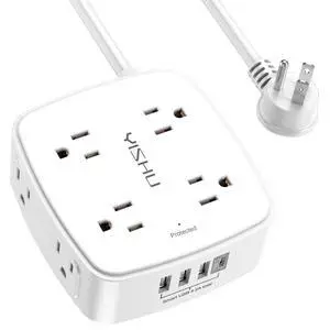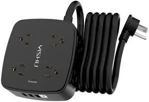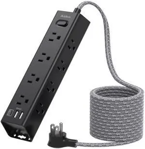 Flat Plug Power Strip Surge Protector 5 Ft Extension Cord with 12 AC Outlets 6 USB Ports 3 Side Multi Plug Outlet Extender Home Office Kitchen Dorm Room Wall Desk Charging Station ETL Listed