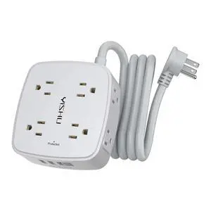 Small Extension Cord - Braided Extension Cord 10 Feet, 13 Amp (1625W) Power Strip with 3 AC Outlet 4 USB (24W/4.8A), College Dorm Room Essentials, White