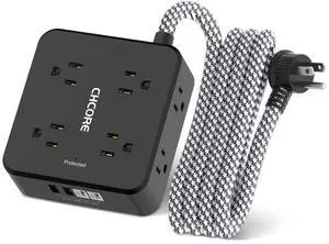 Surge Protector Power Strip - CHCORE 6Ft Braided Extension Cord with 8 Outlets with 4 USB (2 USB C) Charging Ports, Flat Plug Multi Plug Outlet Extender Charging Station for Home Office, ETL, Black