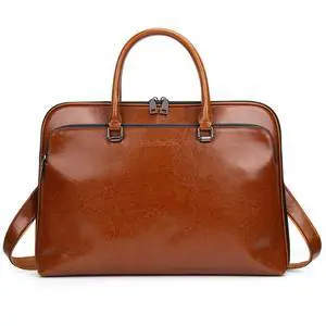 Blofinche Genuine Leather laptop Briefcase: Messenger shoulder bag 15 16 inch men macbook case women work satchel designer handbag Brown