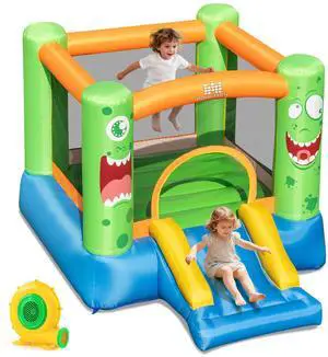 Costway Inflatable Castle Bounce House Jumper Kids Playhouse with Slider and 550W Blower