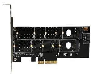 Dual M.2 PCIE 4.0 Adapter for NVMe / SATA SSD, NVME (m Key) and SATA (b Key) SSD to PCIe x4 Slot With Full / Low Profile